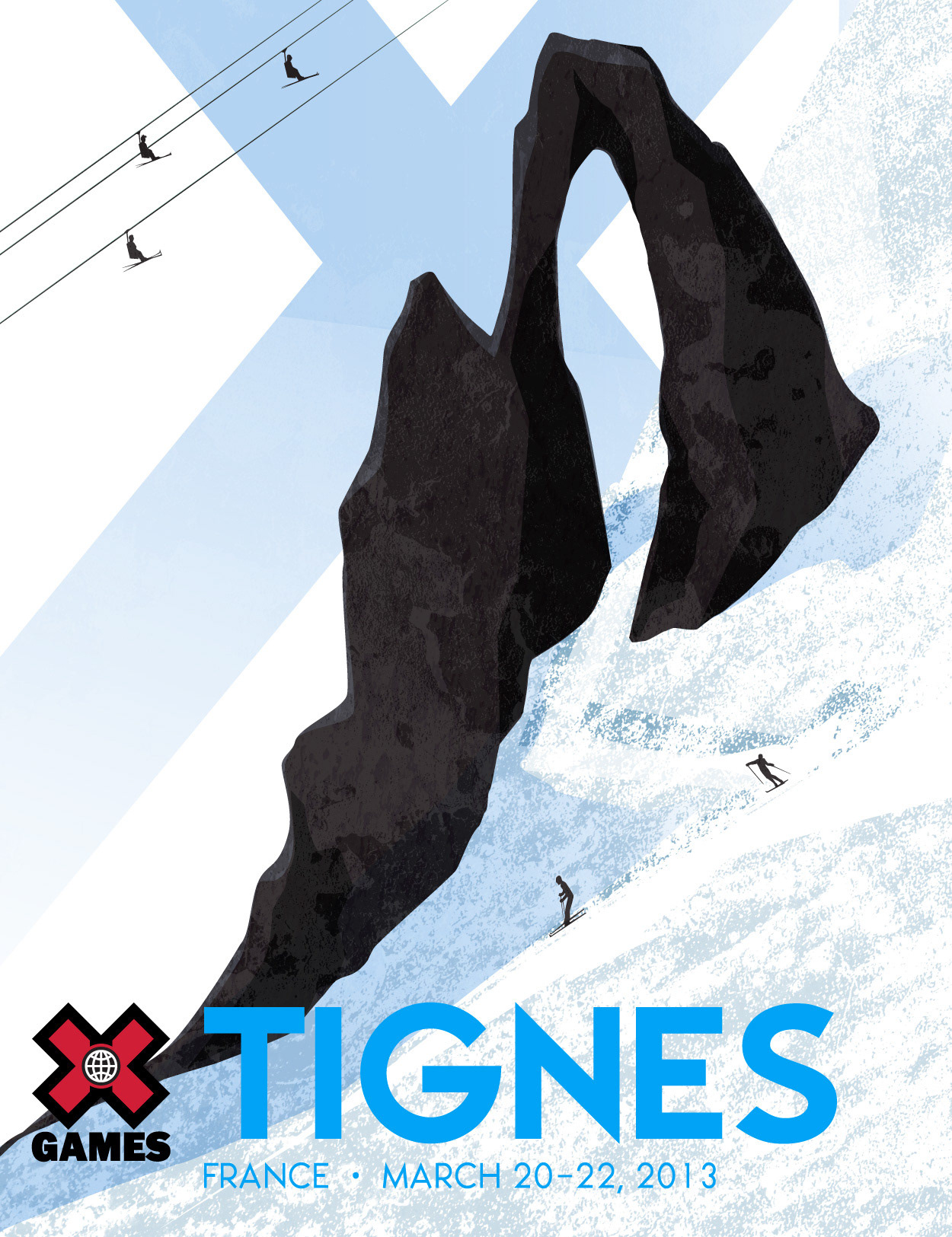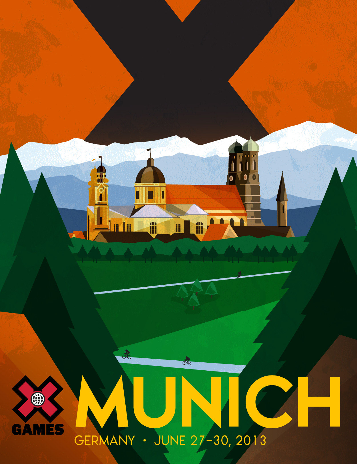 I designed a series of prints for the X Games inspired by vintage travel posters. They were displayed in light boxes as "coming attractions."